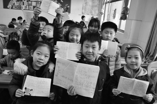 济南市东方双语实验学校一年级三班的学生展示自己的记作业本。 本报记者 李飞 摄