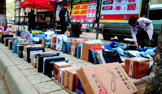 省城一大学校园内待收的快递。(资料片) 记者 周青先 摄