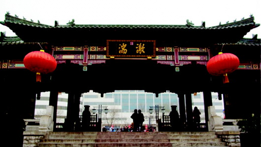 清代康熙四十二年正月二十四日,康熙皇帝于第四次南巡中,第三次来到济南。此次南巡,皇太子胤礽、皇四子胤禛、皇十三子胤祥侍驾随从。是日,康熙乘辇由西门入城,至山东巡抚署中观珍珠泉,午宴后出南门观趵突泉,晚驻跸长清县黄山店(今济南市市中区陡沟街道黄山店村)。
