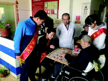 为了解老年人的生理和心理状况,给老人带去关爱,近日,商学院的志愿者们来到了聊城市光明康复中心,举办“风中之烛,你我呵护”主题活动。同学们为老人做一些力所能及的家务并给老人们表演了节目,博得了老人们的欢心,让老人们在欢声笑语中度过了美好的一天。离别之际,志愿者们给老人们献上自制的小礼品。
