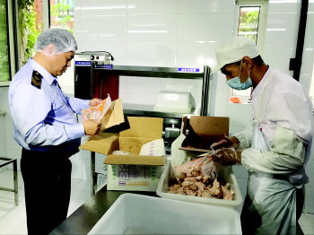 夏季高温高湿季节易出现因食物变质、细菌大量滋生等原因导致的食物中毒,同时,春末夏初又是传染病高发的季节,岛城近期有几所小学和幼儿园出现班级为主的学生呕吐腹痛腹泻症状,牵涉百余人,经疾控部门采样检验判定为诺如病毒感染。“六一”儿童节和中高考季即将到来,为确保在校学生有一个良好的、安全的就餐环境,青岛市食药局在全市学校食堂开展食品安全大检查。检查的重点是学校落实学校食堂月度自查情况,学校食堂日常管理规范情况,防止存在交叉污染等易导致食品中毒的食品安全隐患。内容包括:食堂从业人员健康情况,是否落实肉菜鱼等分类加工、分区存放,冰箱内温度是否符合要求,是否存在食品、半成品和原料混放问题,是否按规定进行出餐食品测温,是否按规定进行食品留样管理等。在各、区市食药监管局开展普查的基础上,青岛市食药局将对每个区市的学校(含托幼机构)食堂进行双随机抽查,还部署了200批次的学校食堂食品安全专项监督检查。
