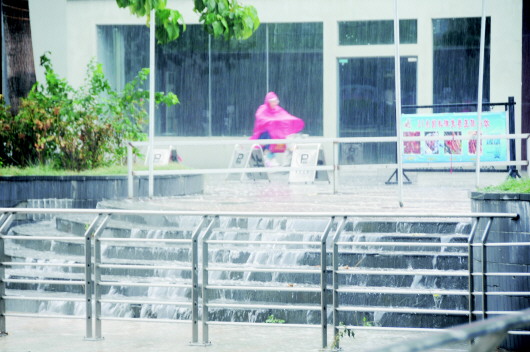 7月18日,一场急雨突袭德州城区,短短几分钟的时间,地面的积水沿台阶流下,犹如瀑布一般。 本报记者 马志勇 摄