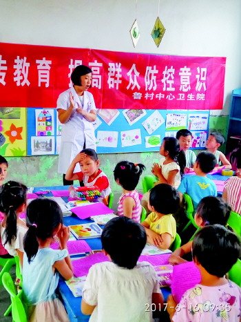 沂源县鲁村镇中心幼儿园开展传染病预防讲座。