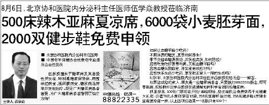 抓紧报名,500张门票现在开抢!亲临现场,您还有机会免费获得千元健康大礼包:价值78元小麦胚芽面12袋,298元亚麻籽油12瓶,298元健步鞋4双辣木亚麻夏凉席一床,以上四项任选其一!名额只有500个!