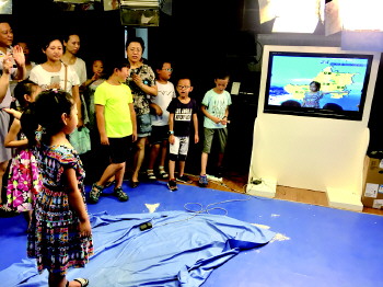 在了解了基本的信息后,为了让小记者们多一份体验感,工作人员安排小记者们来到了气象播报体验厅。