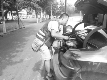 一名代驾司机刚接了单,将锂电池电动车放在乘客的后备箱内。
