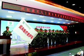 今年7月30日,中国人民解放军建军90周年到来之际,鲁西南医院选调了一批政治思想好、知识学历高、身体素质强、业务水平精的青年医务工作者,组建了民兵医疗救护队,旨在为驻地打造一支维稳处突、应急救援医疗卫生服务保障的机动力量。这也是该院弘扬军队光荣传统,切实推进军民融合示范医院建设进程,建设一流军民融合发展的大型综合性医院的重要举措。