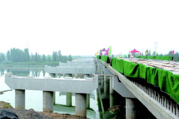 据了解,广州路南延跨万福河大桥连接定陶工程项目起于开发区广州路与G220交叉口,向南跨万福河到开发区与定陶界,大桥全长276米采用双向四车道一级公路,桥宽29.5米,限重55吨。
