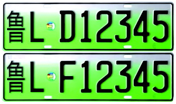 新号牌样式为:鲁LD12345和鲁LF12345,D代表纯电动新能源汽车,F代表非纯电动新能源汽车。体现“绿色、环保、科技”寓意,以绿色为主色调,增加了专用标识,采用新式样、新材料、新工艺以及新的防伪技术,既可实现区分管理、便于识别,又能彰显新能源特色、技术创新。