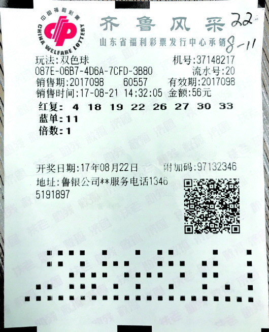 8月22日,双色球第2017098期开出的红球:04、19、22、27、30、33。蓝球:01。德州市鲁银公司37148217号站点的一名彩友以一张8+1的自选复式击中全部红球,斩获当期双色球二等奖1注,四等奖12注和15注五等奖,可谓是盆满钵满。
