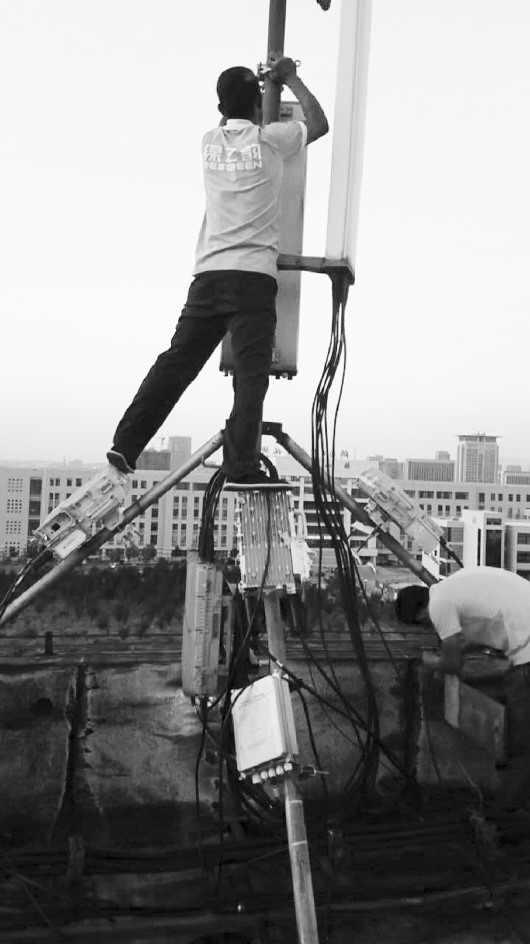 工程师对4G信号进行室外网络优化。