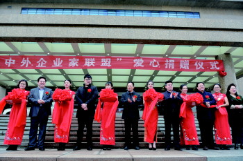 “中外企业家联盟”爱心捐赠仪式。