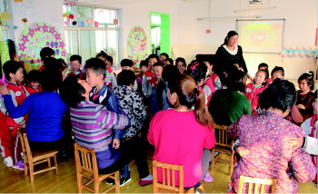 沂源县悦庄沂河幼儿园举行尊敬老人感恩活动。(张洪红)
