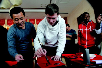 1月30日,来自俄罗斯、几内亚、孟加拉国等国的北交大(威海)留学生在书法家的指导下学写春联和福字,感受中国传统文化魅力和新年的喜庆气氛。