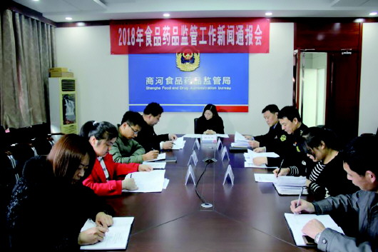 随后,商河县食品药品监督管理局局长张超详细讲述了2018年的重点工作。张超谈到,2018年,商河县食品药品监督管理局将深入学习贯彻党的十九大精神和习近平新时代中国特色社会主义思想,推进“放心食药+”品牌建设,落实全县“2383工作体系”和市局“145”工作思路,突出“创建省级食品安全先进县”这个工作中心,明确“四个主攻方向”(即:守住食药风险点、破解监管难点、突出服务重点、增加工作亮点),大力实施“五个监管”(即:严格监管、依法监管、专业监管、协同监管、智慧监管)。“我们将全面贯彻‘源头控制、产管并重、重典治乱’的要求,着力建设与生态商河相匹配的‘食袋子’、‘菜篮子’、‘果盘子’、‘药匣子’,努力提升服务保障水平和人民群众获得感,全力守护大家舌尖上的安全。”张超如是说道。