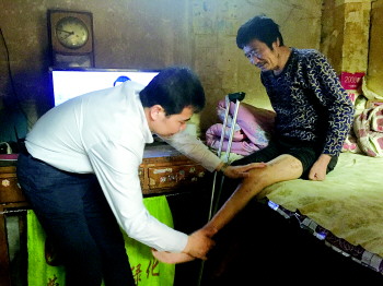 来到牛先生家后,李卫兵发现病人在家后期康复并不是非常好,“肌肉萎缩,关节僵硬。”李卫兵说。由于家里比较忙,锻炼不科学,所以导致后期肢体康复效果并不好。李卫兵手把手指导牛先生及其家人如何帮助锻炼康复,“本身病人脑梗阻后遗症就比较严重,如果再不科学锻炼,很可能就没法走路。”李卫兵说。