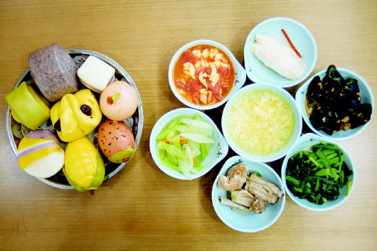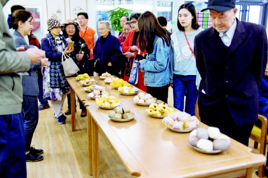 此次试餐的范围选自“怡园日食记”一天的三餐两点,包括菜品、面点、水果、营养汤四大类。活动开始时,餐厅前方摆放的特色面点吸引了大批老人围观。高粱面锅烙、三合面窝头、黑米面馒头、象形草莓、荷叶夹、南瓜花卷等包括五谷杂粮面点和蔬菜营养面点在内的十余种面食。蔬菜营养面点是商埠怡园餐饮文化的重要一环,用各种颜色的鲜榨蔬菜汁和面,并配合各种惟妙惟肖的造型,让老人的面食也有丰富的营养,让吃饭这件事也变得有趣!
