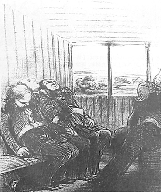 法国19世纪著名画家杜米埃画的火车车厢中昏睡的旅客