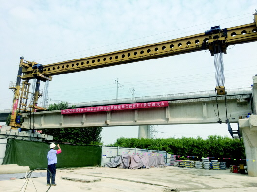 8月26日上午,货运大北环铁路线首片T梁架设成功。 本报记者 刘飞跃 摄