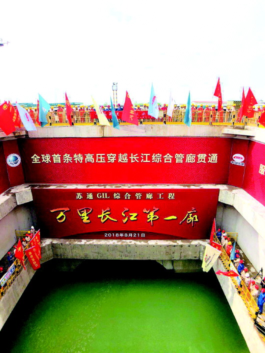 据悉,位于江苏省常熟市江边的苏通GIL综合管廊长江隧道工程是全球首次将大直径盾构隧道应用于电力管廊工程,也是世界上电压等级最高、输送容量最大、技术水平最先进的超长距离GIL创新工程,同时,它还是长江上首条包含了电力、通信、有线电视等市政管线的综合管廊,被称为“万里长江第一廊”,该工程创造了电力工程建设和隧道盾构施工史上的多项世界第一。