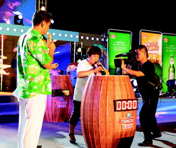 青岛国际啤酒节的酒王大赛已在金沙滩啤酒城连续举办四届。和往年相比,本届啤酒节酒王大赛增加了全民海选的环节,来自全国各地的近千名选手参加了海选。历经每周一赛和复活赛,共有15位酒王入选到当天的总决赛中,共同争夺酒王桂冠,其中一位还是女酒王。比赛采用的都是岛城市民耳熟能详的经典比拼项目,三轮分别是“吹得响亮”“一气喝成”“大海无量”,依据三场比赛的排名成绩决出冠亚季军。