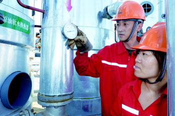 2013年,鲁胜公司利用采出水余热回收技术,将原油采出水中富余的能量提取出来用于原油生产加热,替代了以往燃气、燃油加热的燃料消耗方式。采出水余热项目年可节省标煤2800吨,减少二氧化碳排放量1.16万吨。