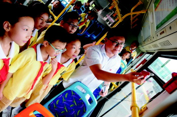 开学在即,淄博公交张店分公司于8月29日在客运中心开展了“安全乘车知识小课堂”活动,来自张店各小学的22名学生代表在家长的陪同下参加了活动。小学生们在工作人员的指引下,排队有序上车,亲身体验刷卡、投币、找座位等步骤。工作人员还介绍了灭火器、安全锤等消防设施的使用方法。活动旨在让小学生了解乘坐公交车的安全事项,提高其安全意识,营造文明、有序、安全的乘车秩序。