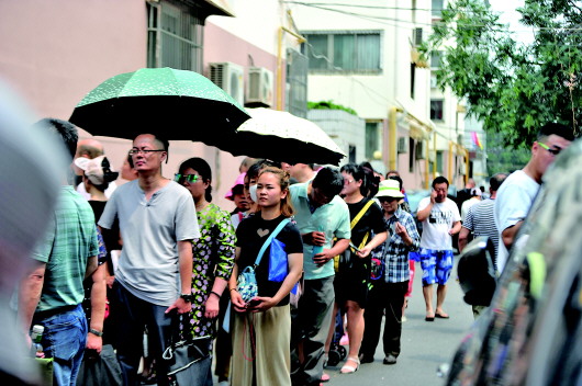6月19日,在济南市中区住房保障和房产管理局,申请公租房的市民正在排队领号。(资料片)
