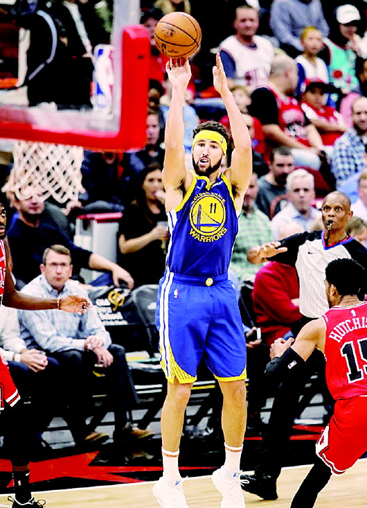 北京时间10月30日上午,NBA常规赛勇士以145比119横扫公牛队。克莱·汤普森觉得自己像是爆发了。半场命中10个三分球追平NBA纪录,第三节再中4记三分球,就此以单场14记三分球超越库里,创造了新的NBA单场三分球命中数纪录。全场比赛,汤普森29投18中,三分球24投14中轰下52分。