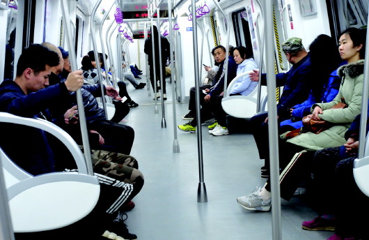 4月10日,济南地铁开通正好十日。早晨的地铁车厢安静舒适,人们乘坐地铁开始了一天的生活。 本报记者 周青先 摄