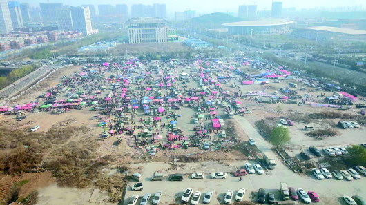 邢村集在唐冶中路西侧、文苑街南侧的一大片空地上,约有两个标准足球场大,除了南边一些区域被停了车外,空地的大部分在逢农历四、九日时就会摆满摊位,摊位呈蛇形延伸走马观花也得逛1小时。虽然空地已经不小,但仍是一位难求,摆摊人早上五六点前就要来占地儿。
