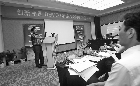 18日,创新中国大型创业类活动青岛分赛在索菲亚大酒店拉开大幕,留美归国的孙玉贤陈述了他的养猪创业项目,目前他已有十个养猪厂。当日,青岛地区以食品安全、新能源、新材料、环保项目等为主的“绿色”产业集群,吸引了投资界极大关注。本报记者 杨宁 通讯员颜菲摄