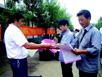 8月26日是“全国律师咨询日”,临沂市法律援助机构开展了以“开展法律援助宣传,提升困难群众知晓率”为主题的法律援助宣传活动。图为工作人员给过往市民发放宣传材料。 通讯员左飞记者吴慧摄