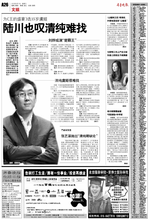陆川也叹清纯难找