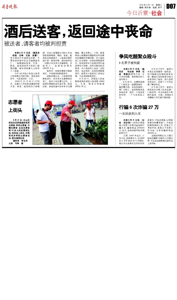 酒后送客◇返回途中丧命