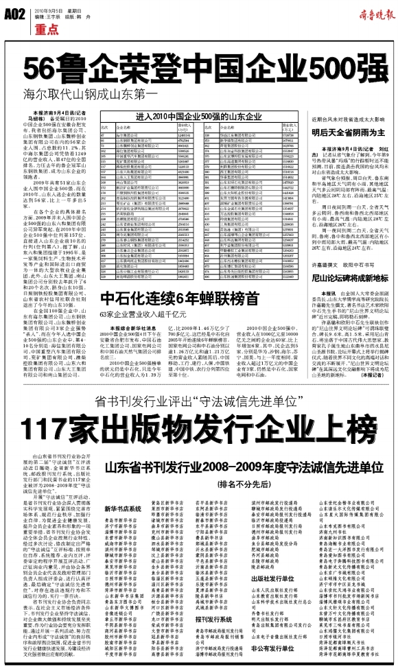 56鲁企荣登中国企业500强
