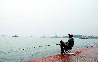 8日,威海下起了淅淅沥沥的小雨,在幸福门公园附近,—个市民冒着细密的雨悠闲地垂钓。本报记者冯砚农摄