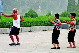作者:刘传法地点:曲阜~广场自述:晨练,男士做示范向左打拳,女士跟学反而全向右o