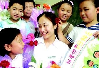 9月9日 在教师节来临之际 临沂商城实验学校的学生们给老师送上贺卡0鲜花等 表达对老师的祝福?