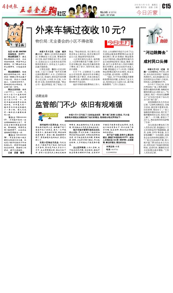 外来车辆过夜收10元?