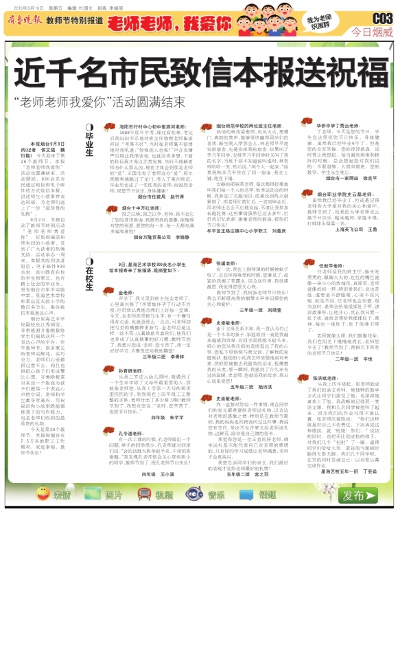 近千名市民致信本报送祝福