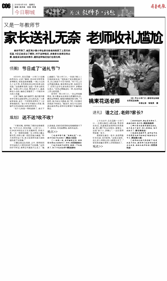 家长送礼无奈 老师收礼尴尬