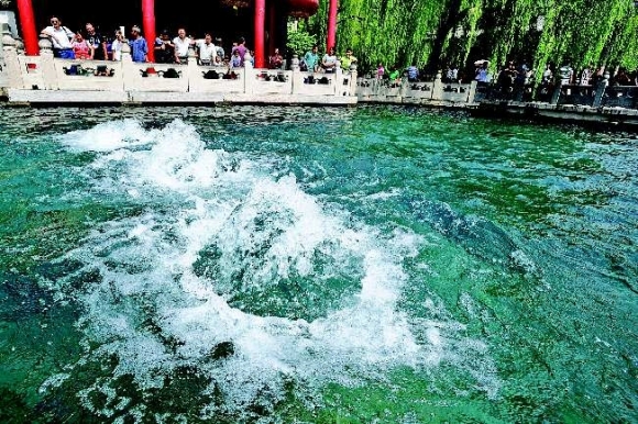 9月10日,济南趵突泉地下水位达到了29.93米,—举超过2005年的29.90米,创造了1966年以来的最高地下水位纪录。灿烂的阳光下,趵突泉喷珠溅玉,声势浩大。趵突泉地下