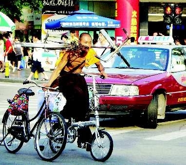 地点:深圳器材:索尼W55自述:骑一辆,推一辆,扛一辆,这等功夫让一旁的出租车司机都看呆了点评:僧少粥多!(拍客奖50元)