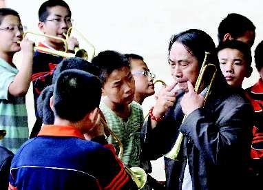 自述:鼓号队训练,老师认真指导