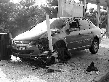 轿车撞站亭