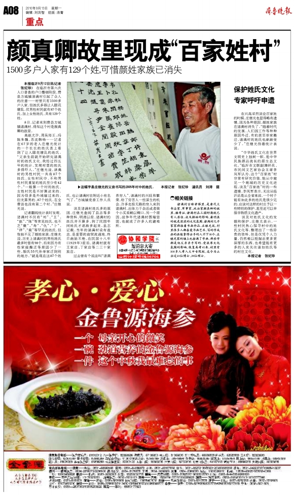 颜真卿故里现成“百家姓村”
