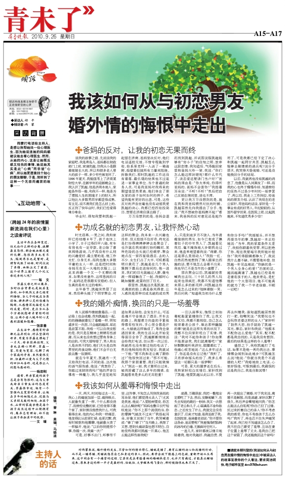 我该如何从与初恋男友婚外情的悔恨中走出
