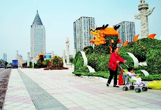 29日,新世纪广场南侧的“二龙戏珠”植物雕塑摆设完成。国庆节前夕,济宁市以创建国家园林城市为契机,在城区范围内摆放了近200万盆鲜花,烘托节日氛围。