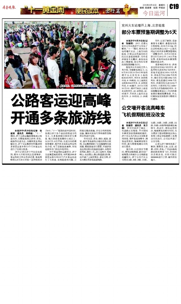 公交增开客流高峰车飞机假期航班没改变
